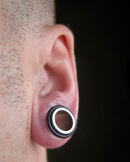 He had a small ring in each earlobe -- not pierced in the conventional way,